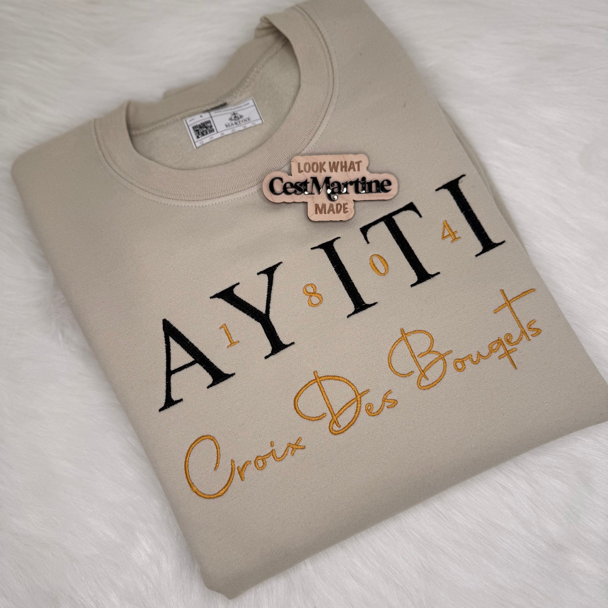 Ayiti, Haiti, Lakay Se Lakay, Home town pride, personalized embroidered CrewNeck, Sweatshirt