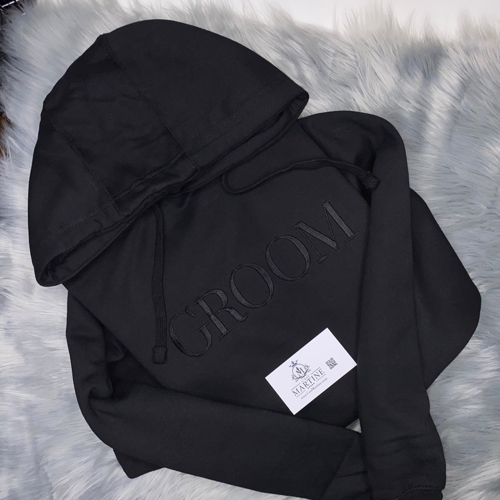 For the perfect couple's gift, check out the Groom Sweatshirt Hoodie. Crafted from 100% cotton, this black sweatshirt is embroidered with the words 'Groom' and is ideal for bachelor parties and weddings. A perfect gift for the newlywed couple, this luxe hoodie is sure to be cherished for many years.