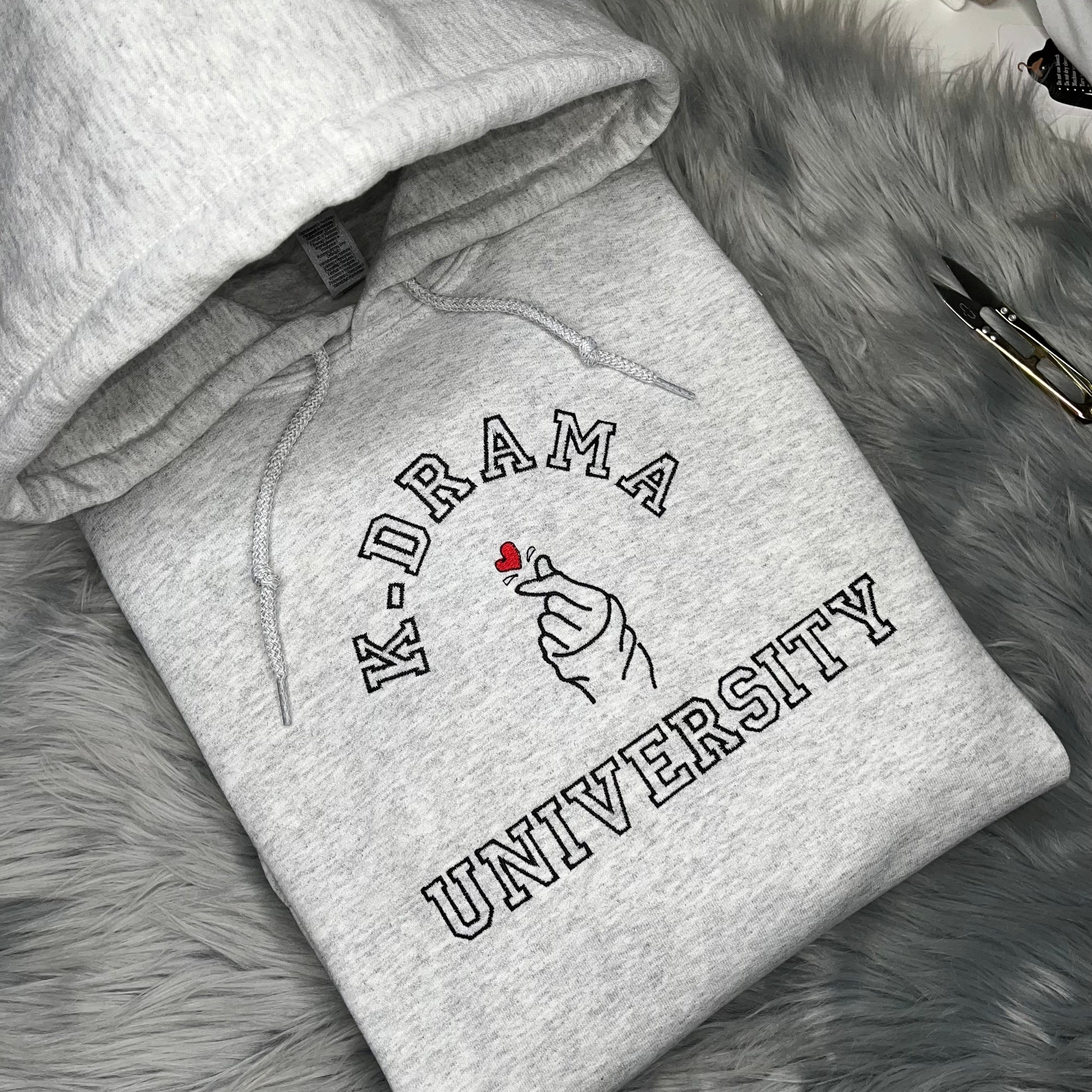 Get ready to binge-watch your favorite K-dramas in style with our K-Drama Korean Drama University Embroidered Hoodie! Made for die-hard fans, this hoodie features a Korean drama-inspired design with a quirky twist. Perfect for Valentine's Day or any day, this hoodie is sure to make a statement.